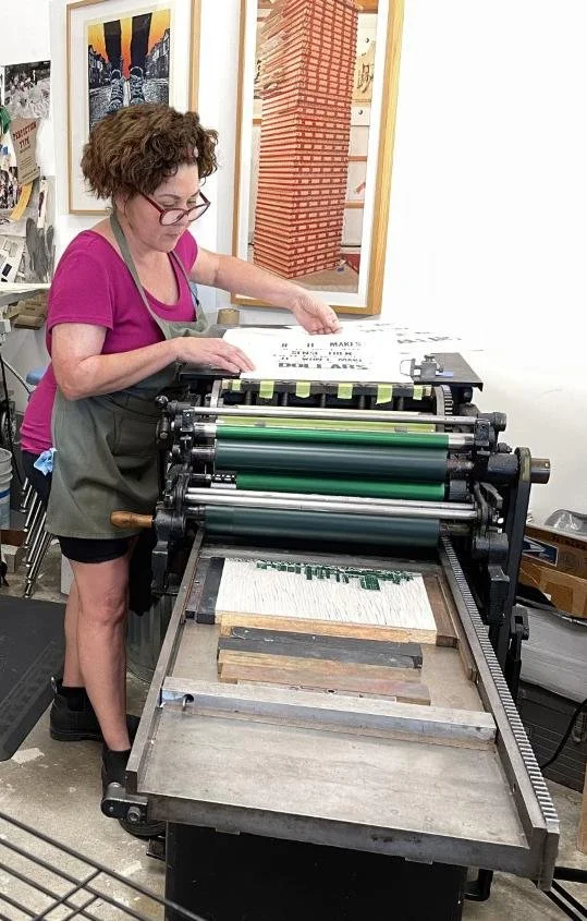 Rosa Naday Garmendia is a multidisciplinary artist and educator whose life and practice are shaped by the cultural landscapes of Miami, Florida, and La Habana, Cuba, where she was born. For more than seventeen years, she has created socially engaged work at the intersection of contemporary art, activism, and community engagement. While she works across installation, collage, drawing, and digital media, printmaking—especially relief and letterpress—has become central to her practice. Her projects address social justice, collective memory, and cultural identity, often in participatory forms that bring art directly into community spaces.