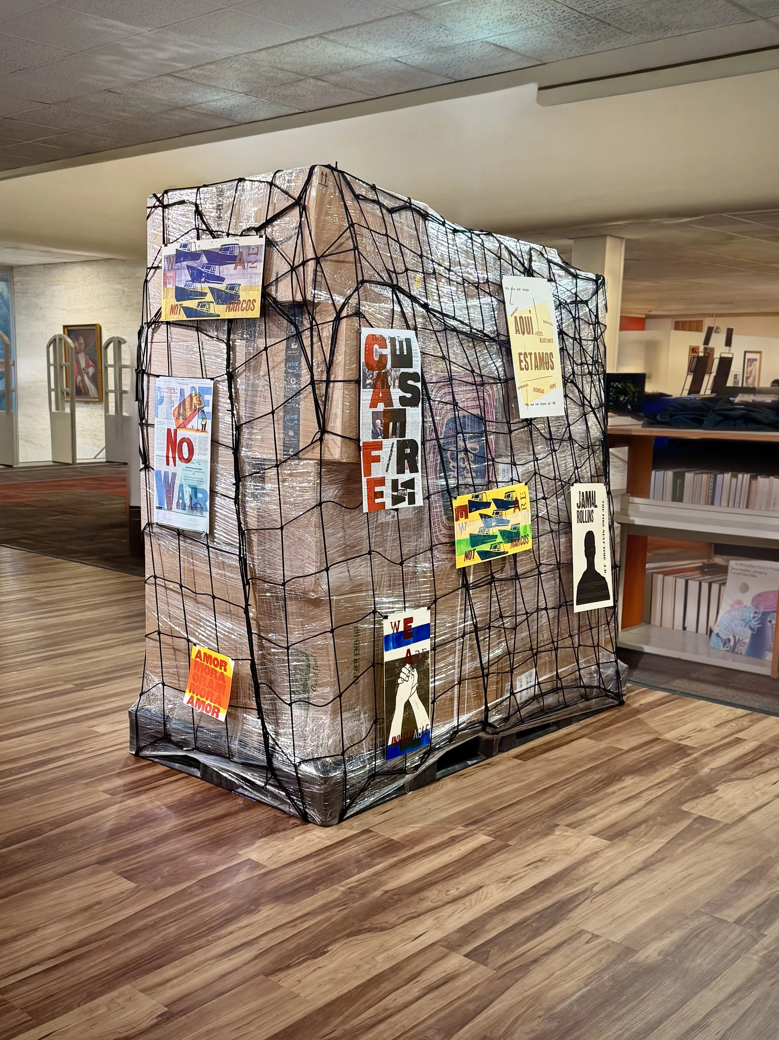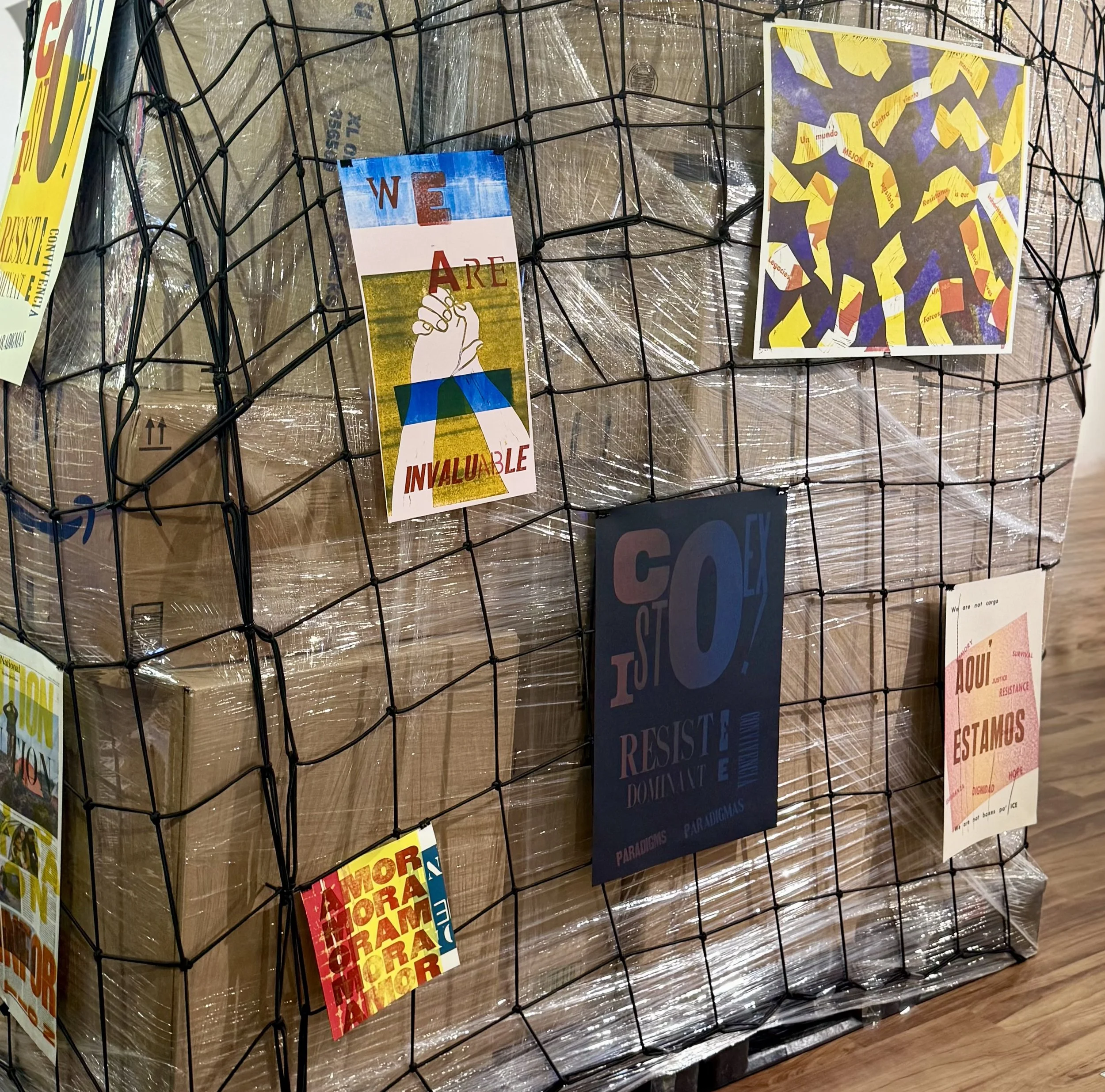 Contain / Resist is an installation centered around a life-sized replica of a shipping container. Reimagined as a mobile print studio and memory archive, the container transforms the cold aesthetics of logistics into a warm platform for protest and participatory storytelling.